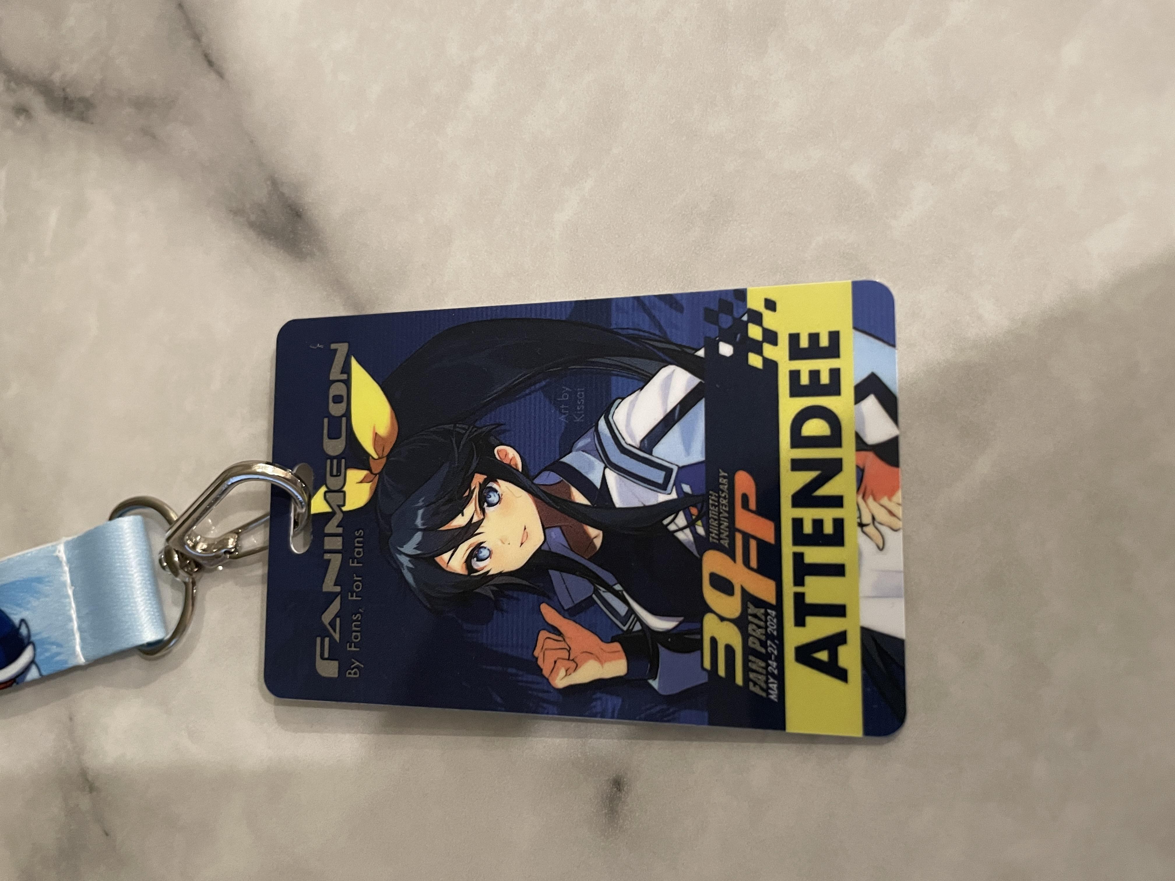 Fanime的卡也是像工牌一样,在侧面打一个孔方便挂绳。正面是Fanime酱,和ATTENDEE字样,反面是个人信息。这次的主题是Fan Prix,Fanime酱穿着车手服。这次有一个痛车展,第一天我也是先去那里了。